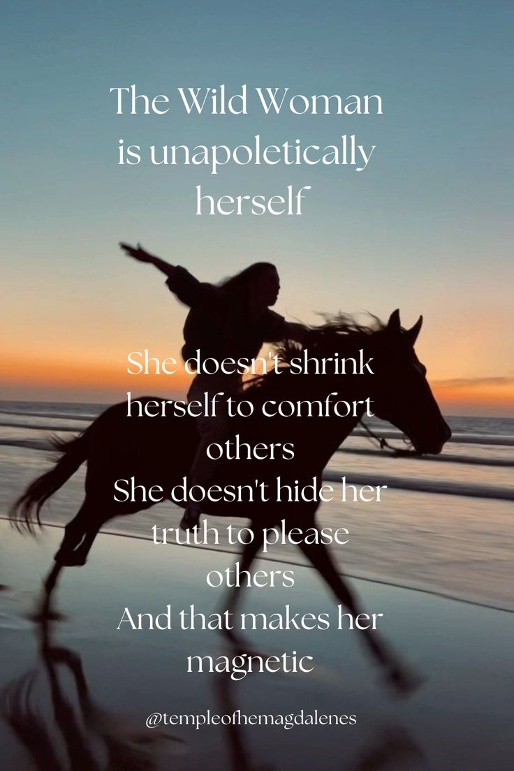 The Wild Woman doesn’t shrink herself to comfort others. She doesn’t hide her truth to please others. She is unapolegetically herself. She expresses her truth unafraid of who is in the room. She refuses to get quiet when everything within her wants to scream.